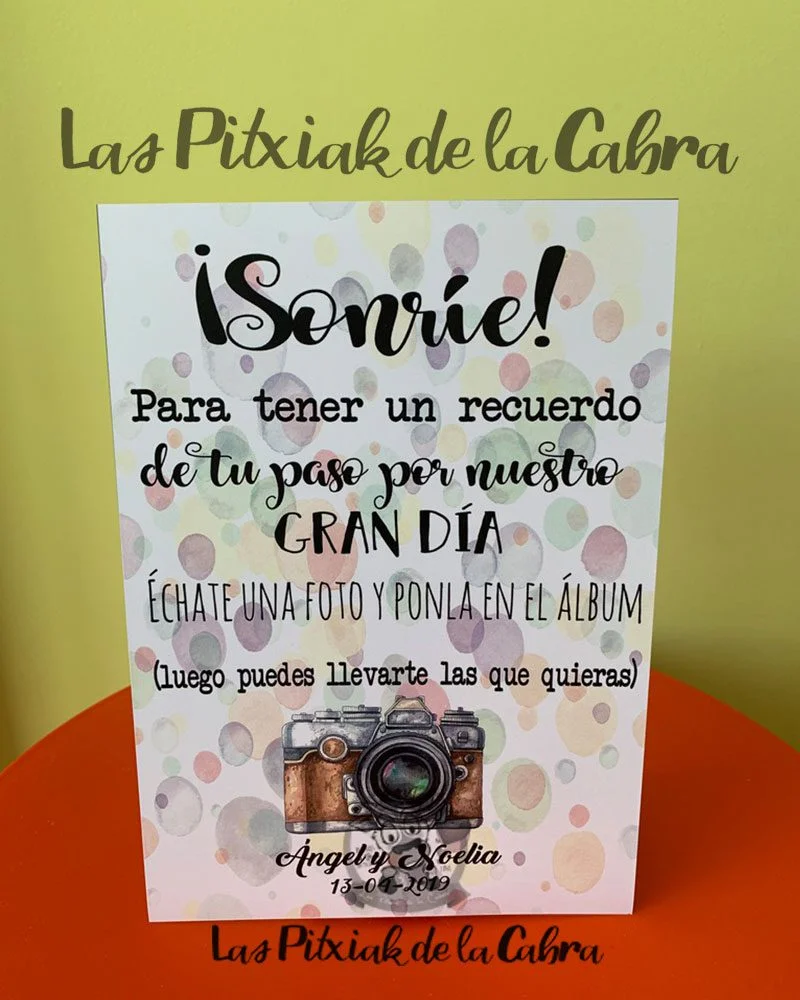 ¿Sabías que…? Cartel Sonríe Ángel y Noelia Lunares se llama así porque ellos fueron los primeros novios que lo pidieron, lo diseñamos específicamente para ellos.