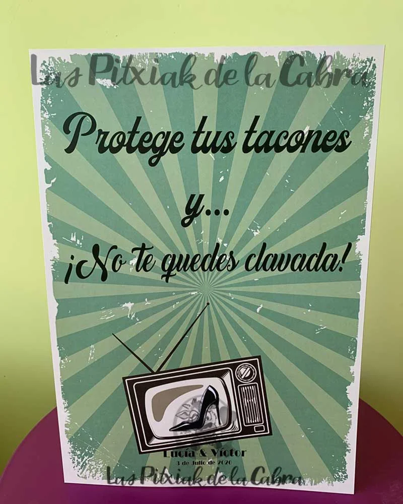 Es decir, que aunque en la web veis modelos limitados, todo lo que soñéis, para vuestra boda, bautizo, comunión, cumpleaños o cualquier otro evento, nosotros lo haremos posible como en este cartel tacones cine clásico.