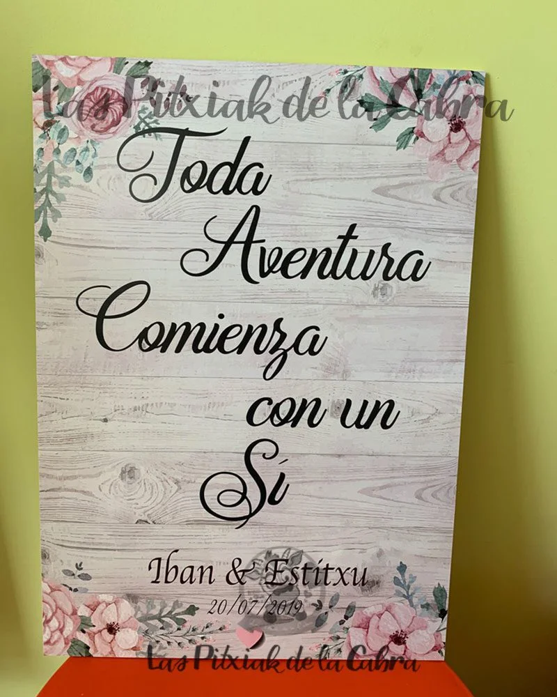 ¿Sabías que…? Cartel toda aventura comienza con un Sí, este cartel lo hicimos para Estitxu, quería flores acompañando esta bonita frase.