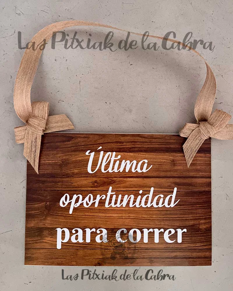 Cartel última oportunidad para correr boda para esta pareja que nos lo encargó con estos detalles pero aunque en la web veis modelos limitados, todo lo que soñéis, para vuestra boda, bautizo, comunión, cumpleaños o cualquier otro evento, nosotros lo haremos posible.