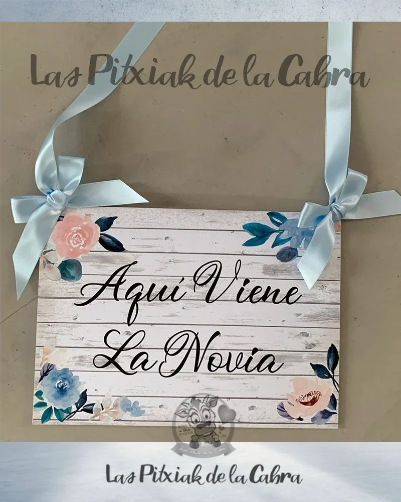 ¿Sabías que…? Este cartel viene la novia azul y rosa está hecho a medida para una novia que quería modificar uno de nuestros carteles.
