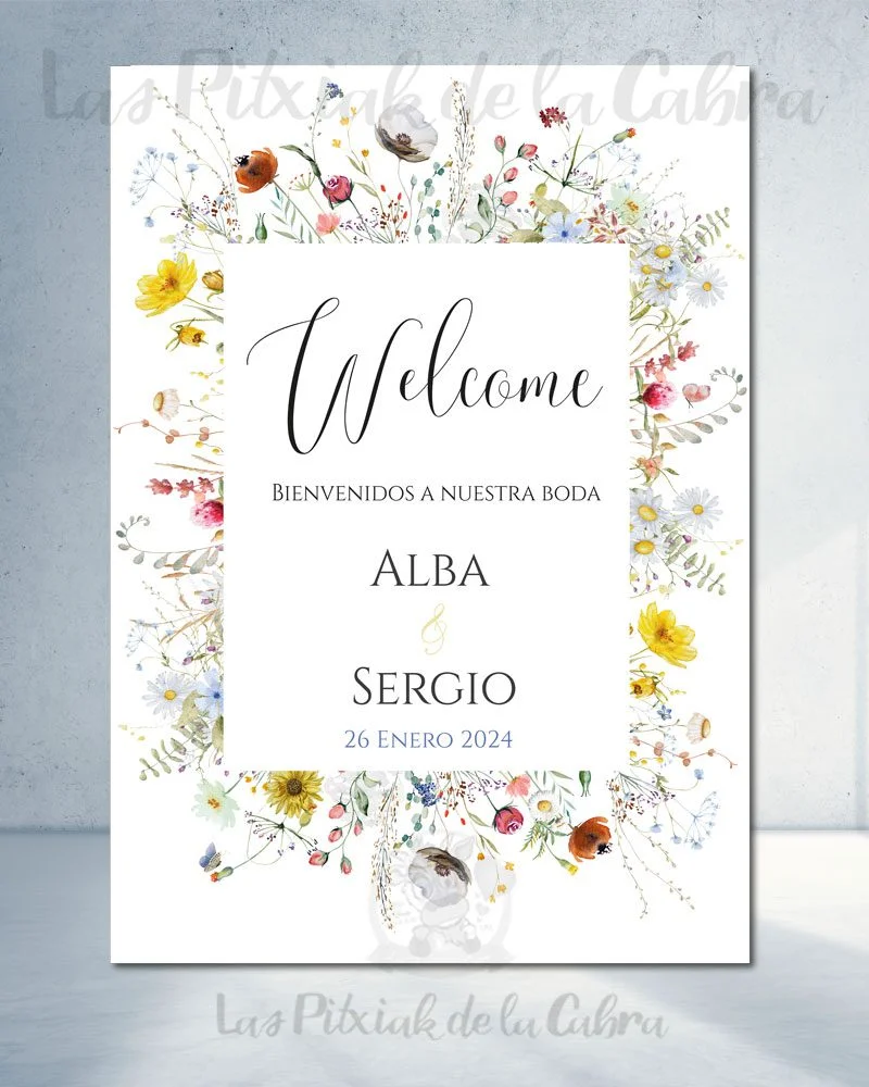 Cartel Welcome flores silvestres boda