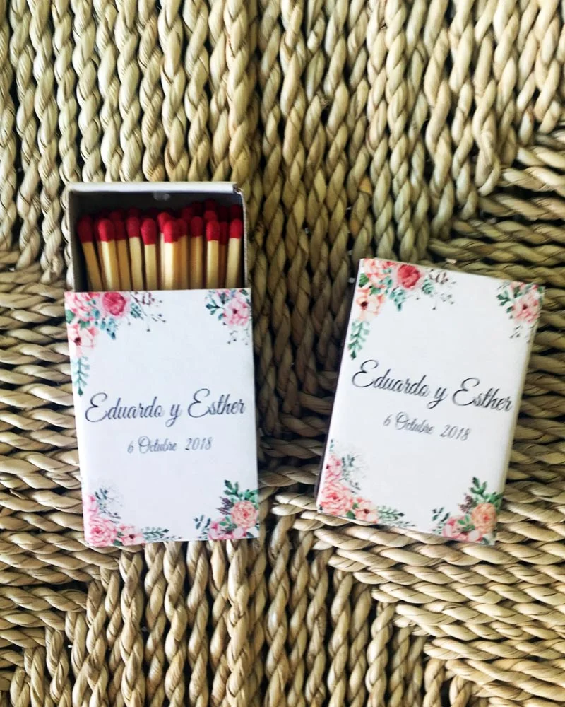 ¿Sabías que…? Este modelo de Cerillas Eduardo & Esther, se llama así, porque fueron los primeros novios para los que creamos este diseño ellos nos contaron como querían que fuera, le preparamos varias propuestas que modificaron a su gusto y una vez acertamos con lo que querían y nos dieron su visto bueno, lo pusimos en marcha. Es decir, que aunque en la web veis modelos limitados, todo lo que soñéis, para vuestra boda, bautizo, comunión, cumpleaños o cualquier otro evento, nosotros lo haremos posible.