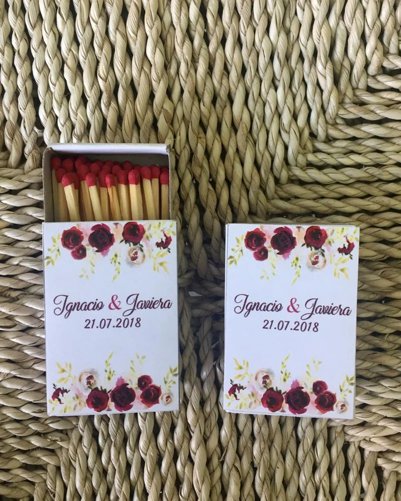 Las cajitas de Cerillas son pequeñas, llevan unos 40 fósforos aproximadamente y llevan una pegatina en cada cara, pueden ser iguales o diferentes. ¡Como vosotros queráis!