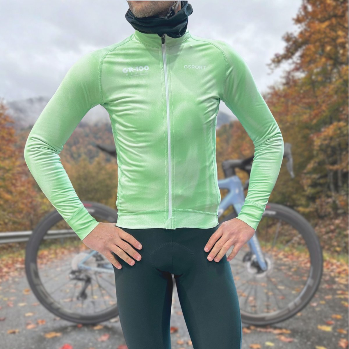 - Confeccionado con tejido de membrana polar en la parte delantera y mangas y tejido grueso afelpado y transpirable en la parte trasera.