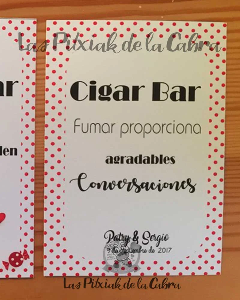 Cartel Cigar Bar Patry lunares Rojos fue un diseño que creamos específicamente para estos novios.