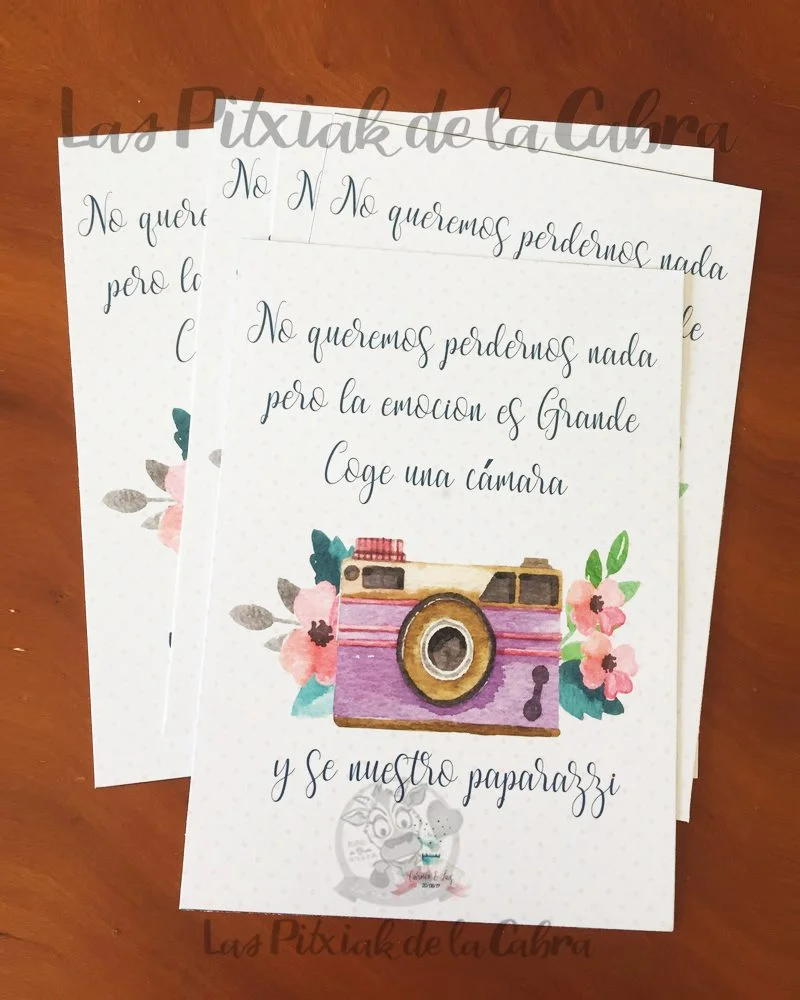 Cartel “Coge una cámara y se nuestro paparazzi” fue un diseño que creamos específicamente para estos novios.