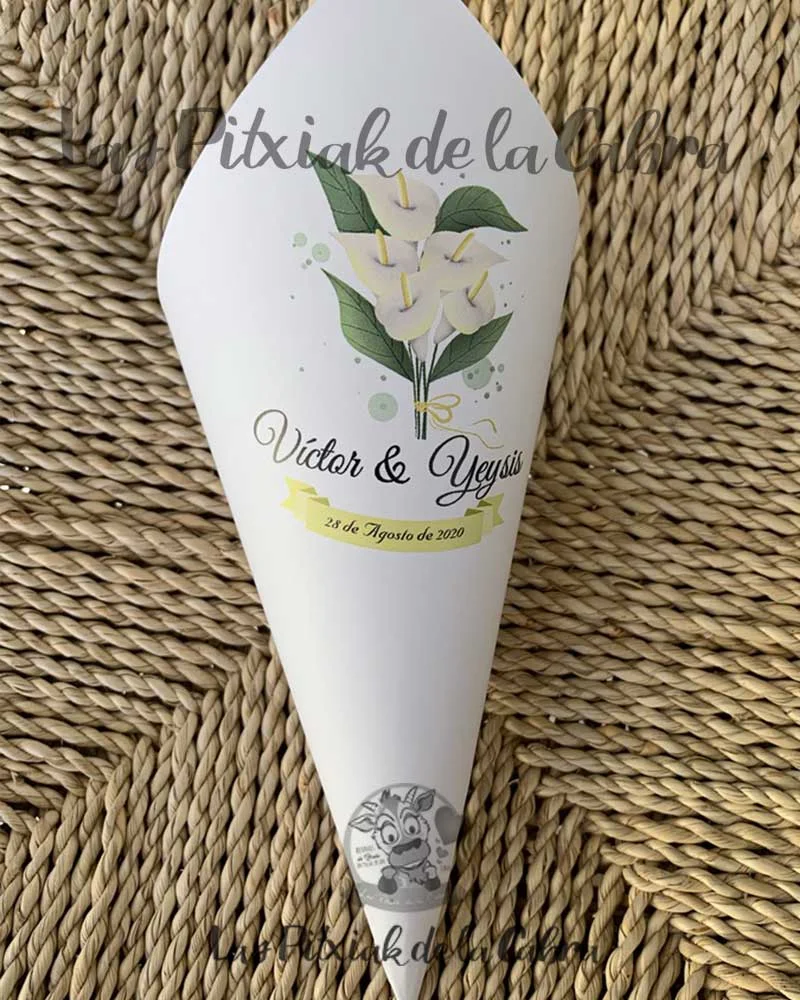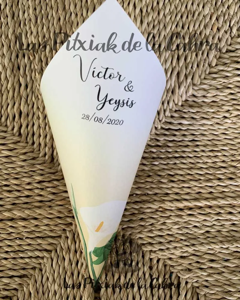 Los Conos Calas llevan el nombre de los primeros novios para los que los creamos y nos pidieron un diseño con este tipo de flor.