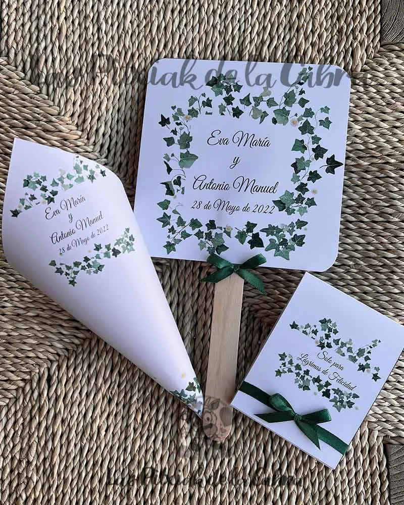 Los Conos hiedra los hicimos con el resto de la papelería a juego para Eva María y Manuel.