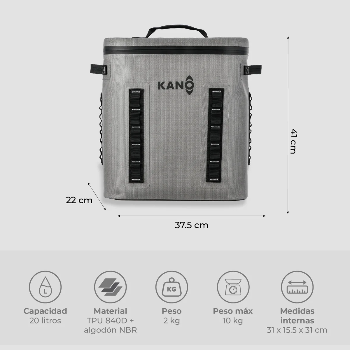 Prepara tu próxima aventura con la tranquilidad de saber que todo se mantendrá fresco por más tiempo. La Mochila Térmica de 20 Litros Grey by Kano combina diseño ergonómico, materiales de alta calidad y máximo rendimiento térmico. Pensada para acompañarte en campamentos, días de playa, pesca o reuniones con amigos, es la aliada infaltable para disfrutar cada momento sin preocuparte por el hielo ni la conservación de tus alimentos y bebidas.