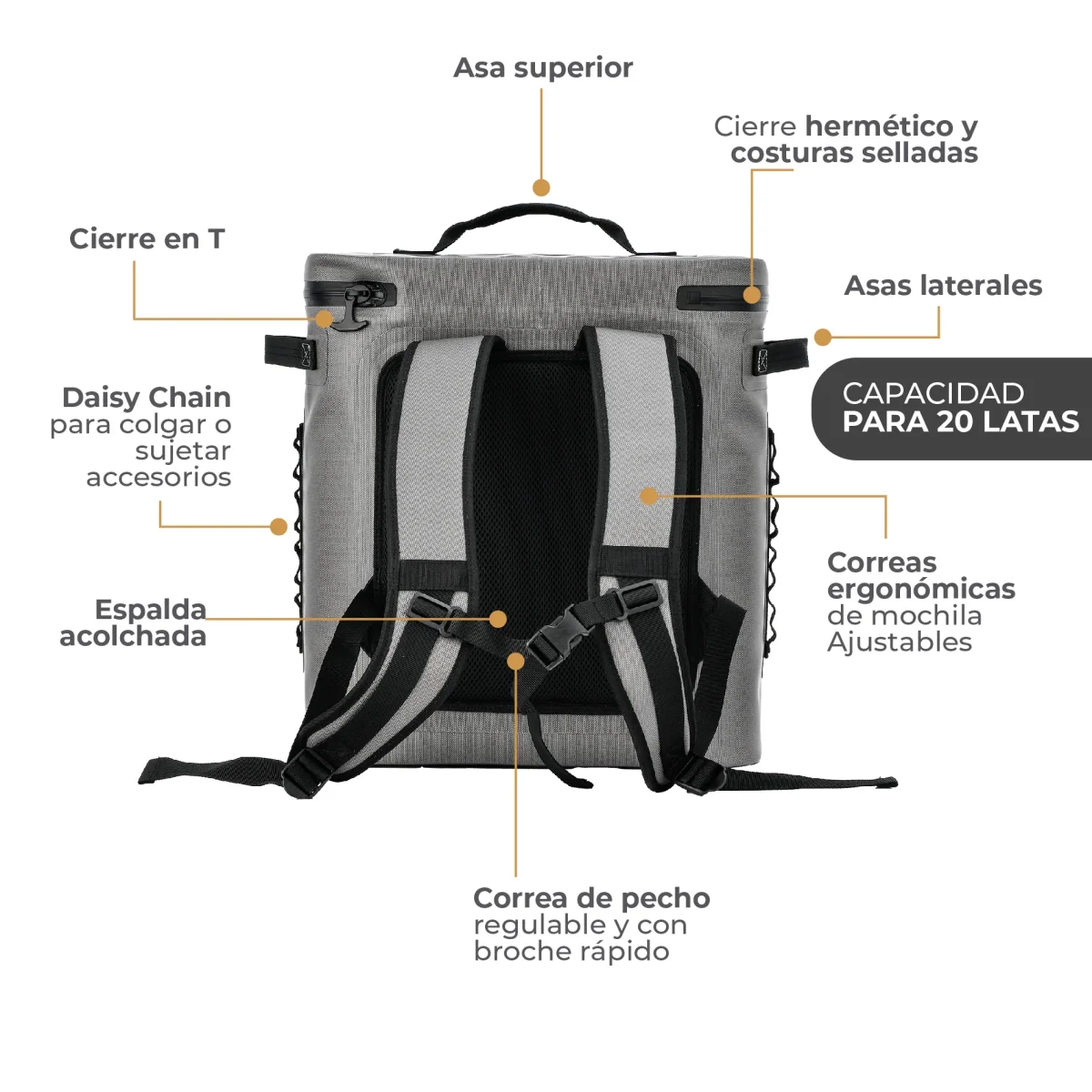 Cooler Mochila Térmica de Aislamiento Grey 20L