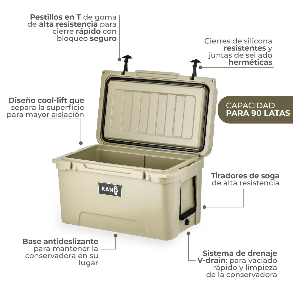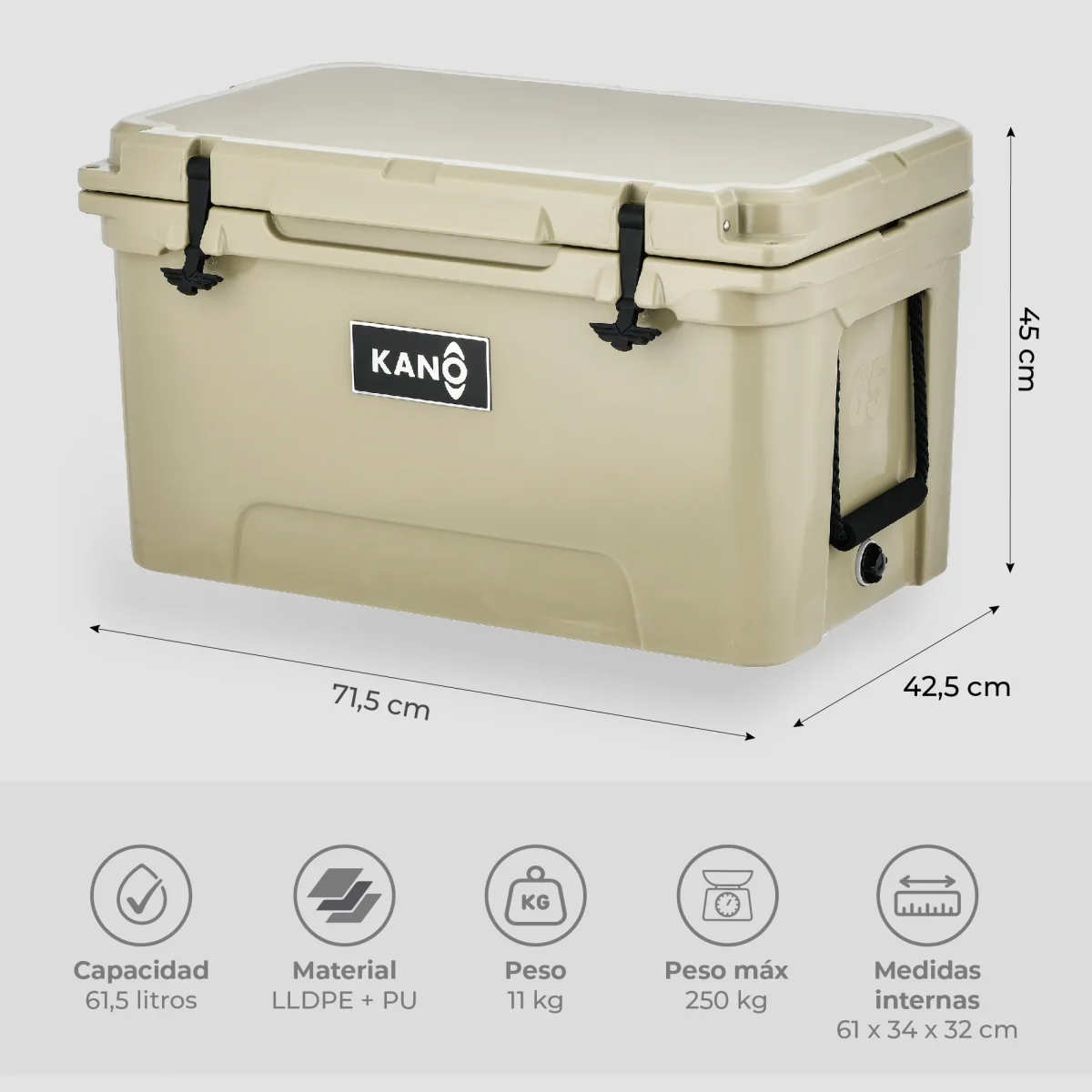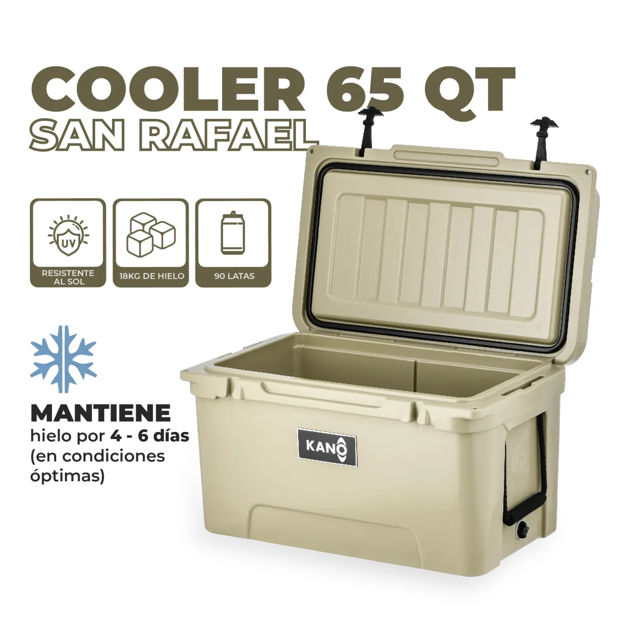 Prepara tu próxima aventura con la tranquilidad de saber que todo se mantendrá fresco por más tiempo. La Cooler Rígida de 65 QT San Rafael by Kano combina diseño robusto, materiales de alta calidad y máximo rendimiento térmico, pensado para acompañarte en campamentos, días de playa, pesca o reuniones con amigos. Un aliado infaltable para disfrutar cada momento sin preocuparte por el hielo ni la conservación de tus alimentos y bebidas.