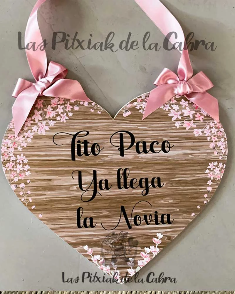 Este tipo de carteles llevan la impresión sobre papel, una base de panelado de madera y el lacito para colgar. Son carteles ligeros que no pesan pero también son resistentes, no se doblan, ni rompen facilmente. El diseño se hace completamente personalizado, así como el lacito, también podemos ponerlo del color que queráis. Su medida es de 297×210 mm el modelo rectangular y de 285x235mm el modelo con forma de corazón.