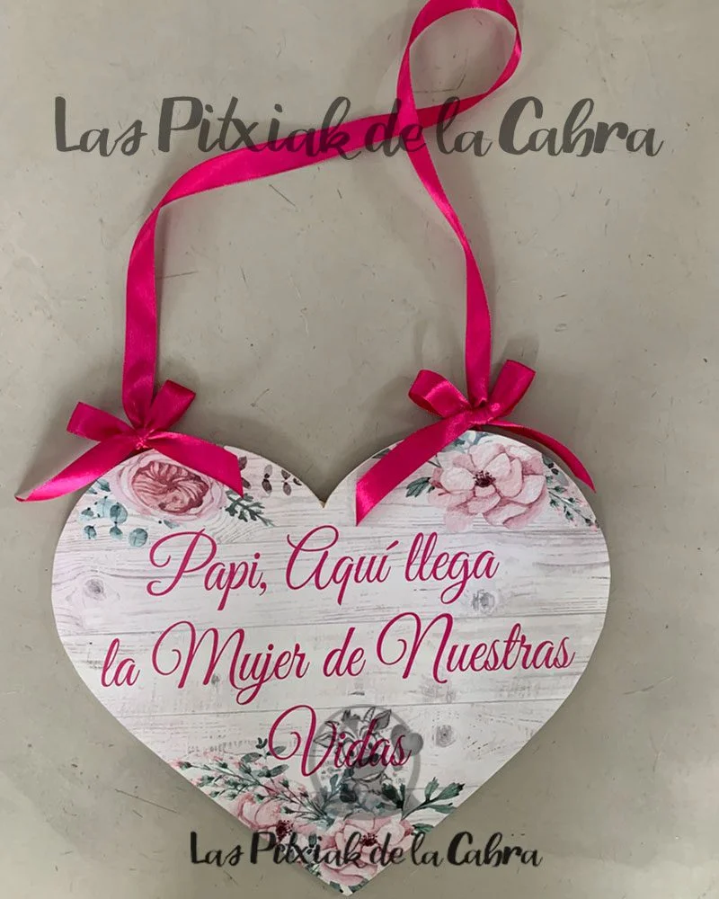 Este tipo de carteles llevan la impresión sobre papel, una base de panelado de madera y el lacito para colgar. Son carteles ligeros que no pesan pero también son resistentes, no se doblan, ni rompen facilmente. El diseño se hace completamente personalizado, así como el lacito, también podemos ponerlo del color que queráis. Su medida es de 297×210 mm el modelo rectangular y de 285x235mm el modelo con forma de corazón.