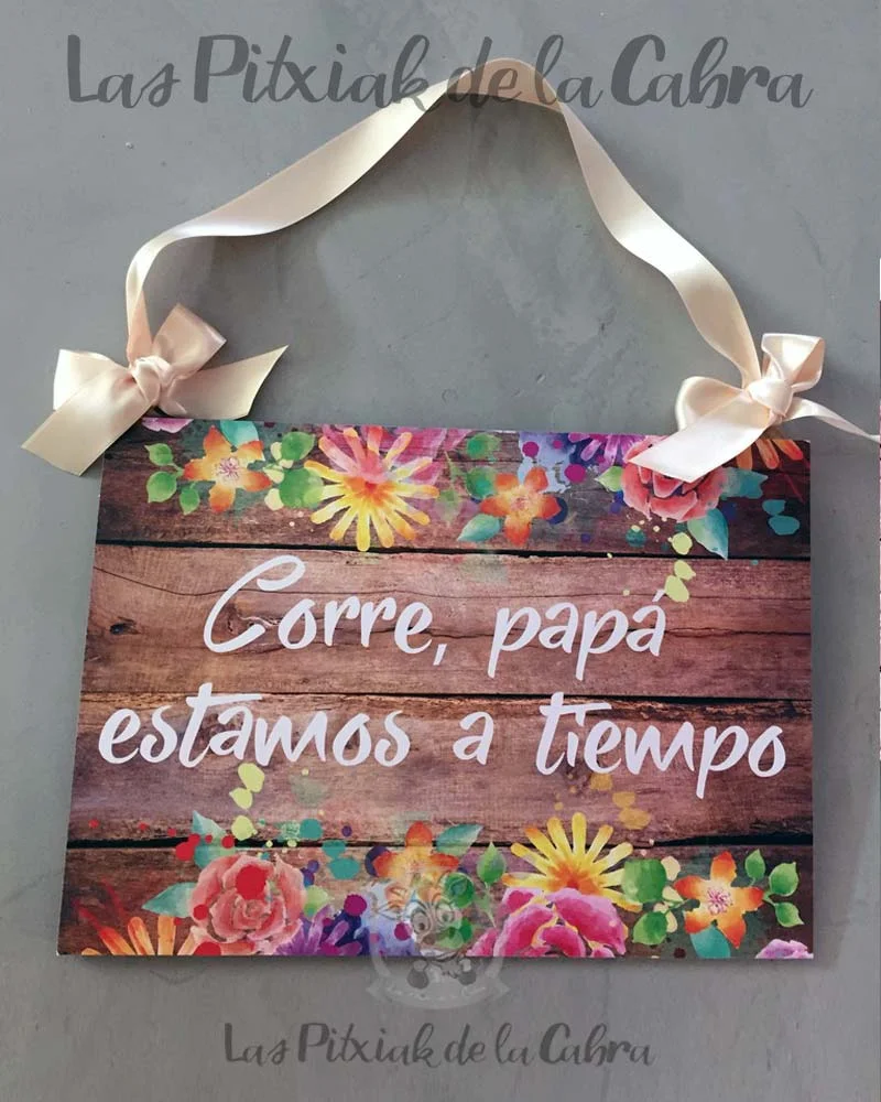 ¿Sabías que…? Este cartel Corre, Papa estamos a tiempo”puede llevar el texto que queráis, aunque en la web veis modelos limitados, todo lo que soñéis, para vuestra boda, bautizo, comunión, cumpleaños o cualquier otro evento, nosotros lo haremos posible.