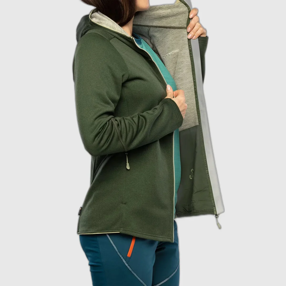 La Sudadera Cosmic es el equilibrio perfecto entre calidez y rendimiento para actividades de montaña. Fabricada con materiales reciclados, esta sudadera ecológica proporciona calidez ligera con un bajo impacto ambiental. Su capucha funcional y el tratamiento antiolor te mantienen cómoda y fresca en condiciones cambiantes, incluso durante el esfuerzo intenso en entornos outdoor.