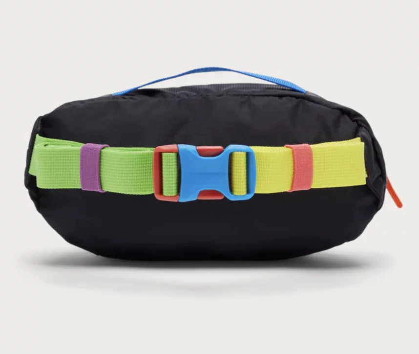 La Cotopaxi Kapai 1.5 L Dark Del Día es una riñonera diferente a cualquier otra. Diseñada con materiales reciclados de alta calidad, cada pieza es única e irrepetible, reflejando el espíritu colorido y sostenible de Cotopaxi.