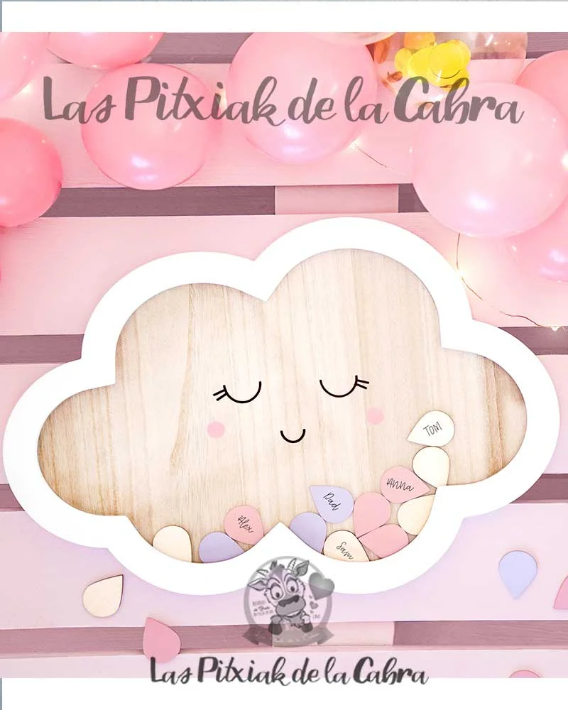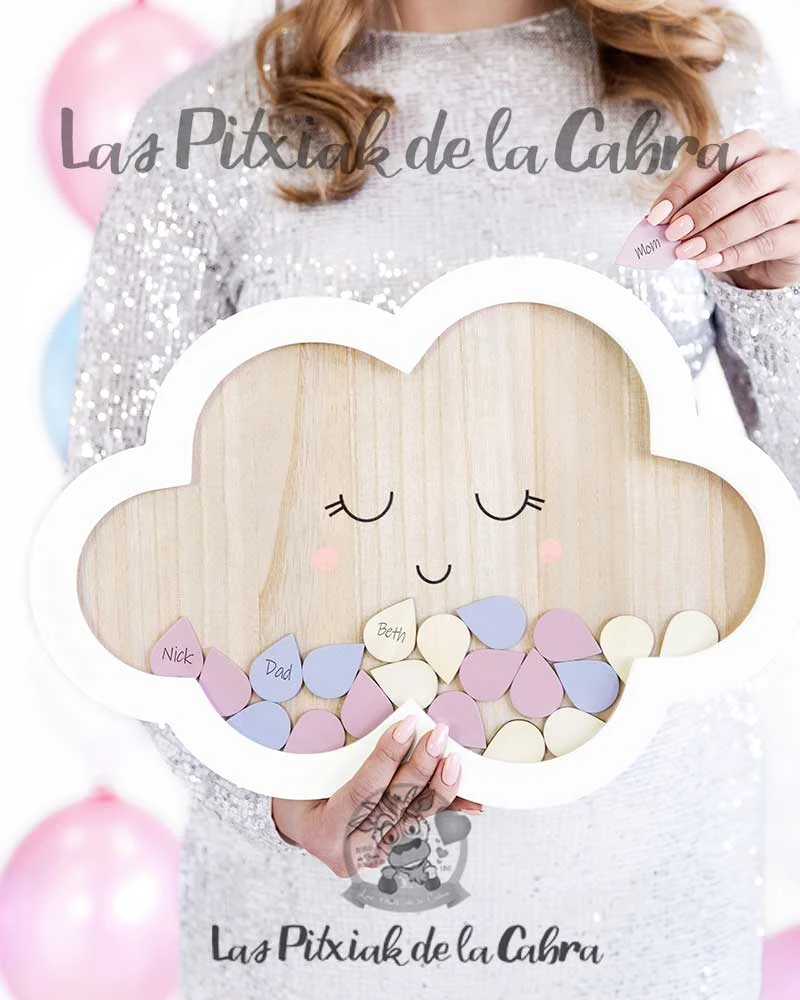 Original Cuadro de Firmas Nube con la que podrás embellecer la decoración de tus cumpleaños, bautizos, comuniones y baby showers, además de sorprender a tus invitados con una actividad muy creativa.