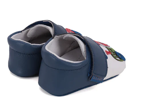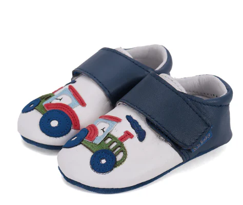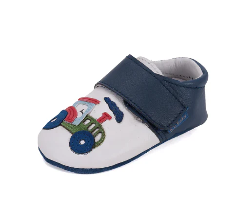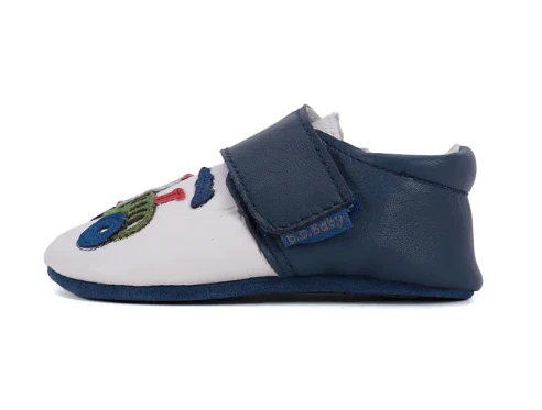 Principales ventajas: – materiales naturales utilizados, probados en un laboratorio checo – Punta redonda espaciosa que proporciona suficiente espacio para los dedos. – Plantilla interior suave y extraíble – Cierre de velcro – Suelas flexibles de cuero suave con suelas antideslizantes con forma de logotipo. Especificaciones del material: – parte superior – cuero natural – plantilla interior – cuero