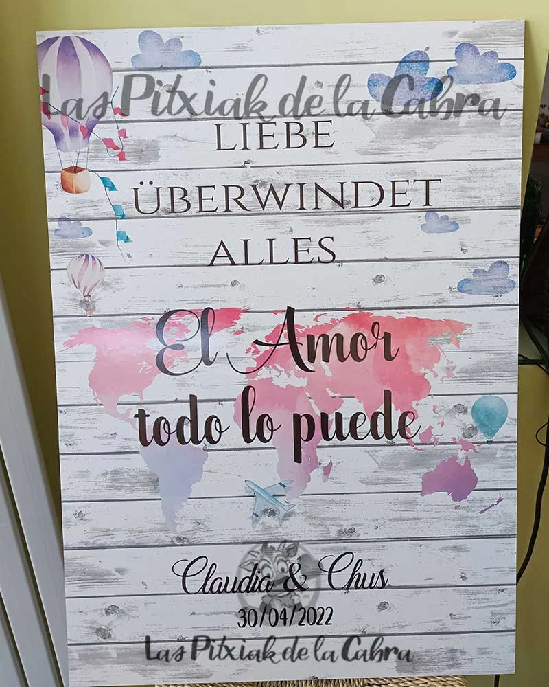 ¿Sabías que…? Cartel El Amor Todo lo Puede se llama así porque estas novias nos encargaron este cartel en alemán y español para el día de su boda.