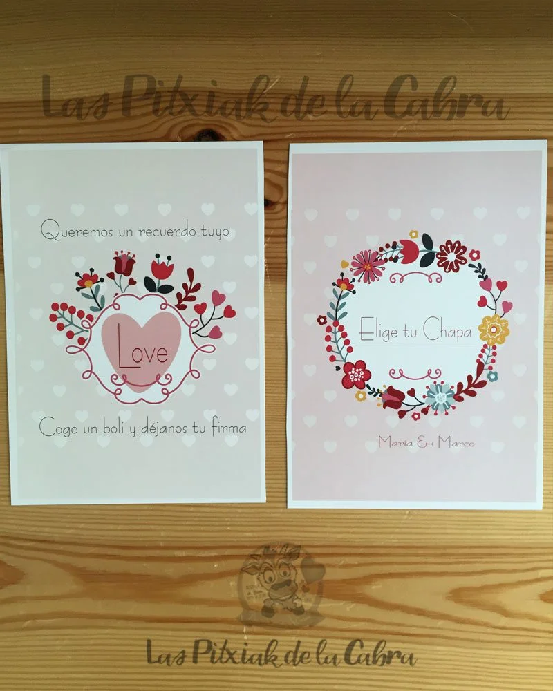 Hacemos carteles con diseños totalmente personalizados específicos para cada espacio de vuestra boda o evento.