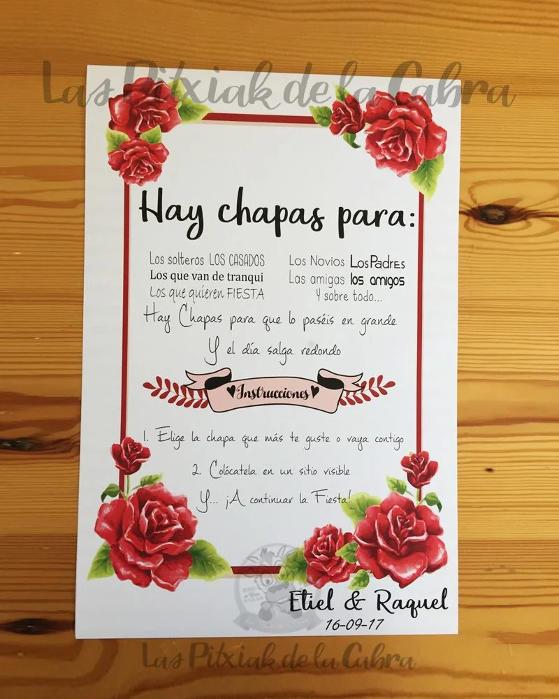 Cartel “Escoge tu chapa” fue un diseño que creamos específicamente para estos novios.