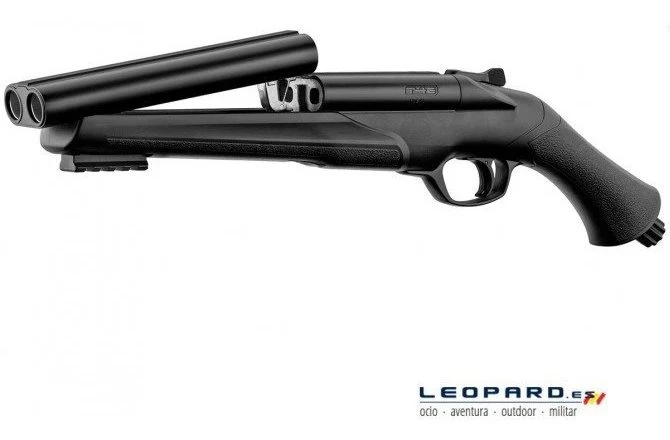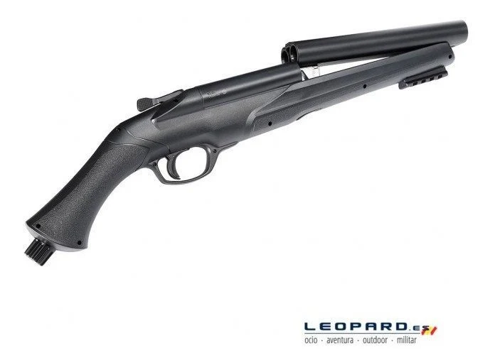 La escopeta 68 de defensa casera de doble cañón combina potencia y velocidad. Gracias a su sistema de perforación rápida, está listo para usar en cualquier momento. Con un ligero golpe en la parte inferior de la empuñadura, puede perforar la cápsula de CO2 cuando la ocasión lo requiera. El HDS viene con un riel Picatinny debajo del cañón y un indicador de presión. El gran calibre .68 le permite usar bolas de goma, bolas de pimienta, bolas de tiza y bolas de pintura, que pueden dispararse individualmente o simultáneamente desde ambos barriles.