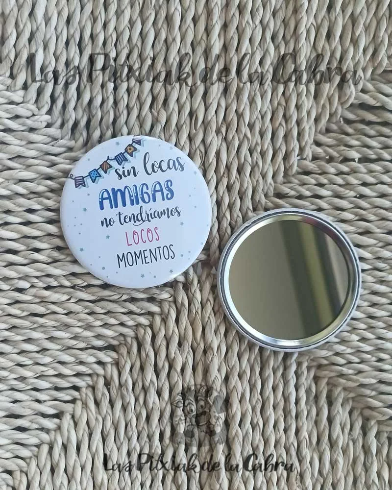 Este artículo contiene un espejo con la frase “Sin locas amigas no tendríamos locos momentos”, ideal para regalar a tus amigas el día de la boda o para la despedida de soltera, cumpleaños de amigas o cualquier tipo de evento.