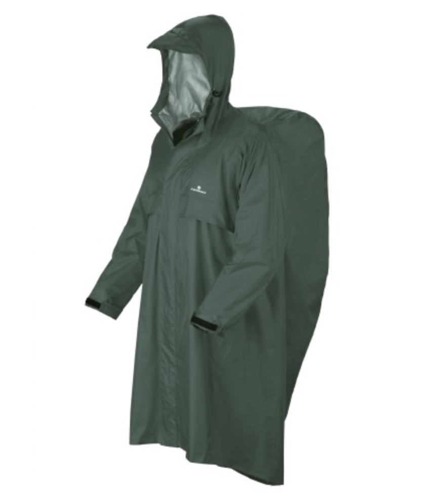 Trekker es el poncho impermeable fabricado con espacio suficiente para cubrir mochila grande.