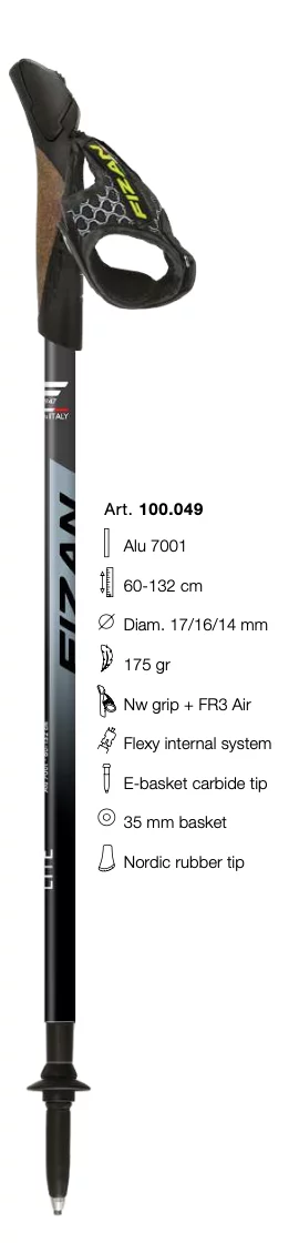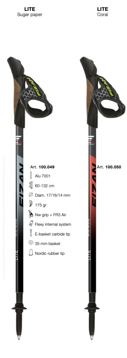 Los bastones Fizan Lite están fabricados con aluminio 7001 y están formados por tres tramos de diámetros 17/16/14 mm.