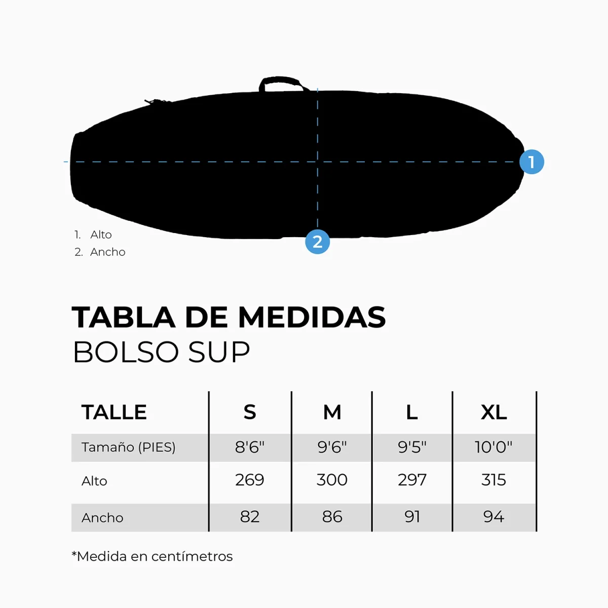 - Talle M 9’6″ SUP: 300 x 86 cm
