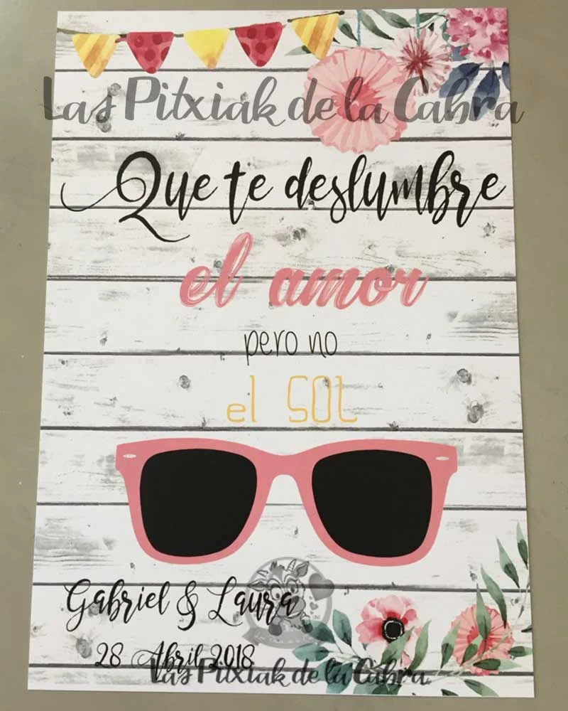Cartel Gafas Gabi & Lau fue un diseño que creamos específicamente para estos novios.