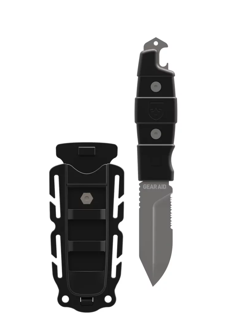 Rompevidrios incorporado para emergencias y funda compatible con MOLLE para innumerables opciones de montaje en mochilas o equipo de campamento