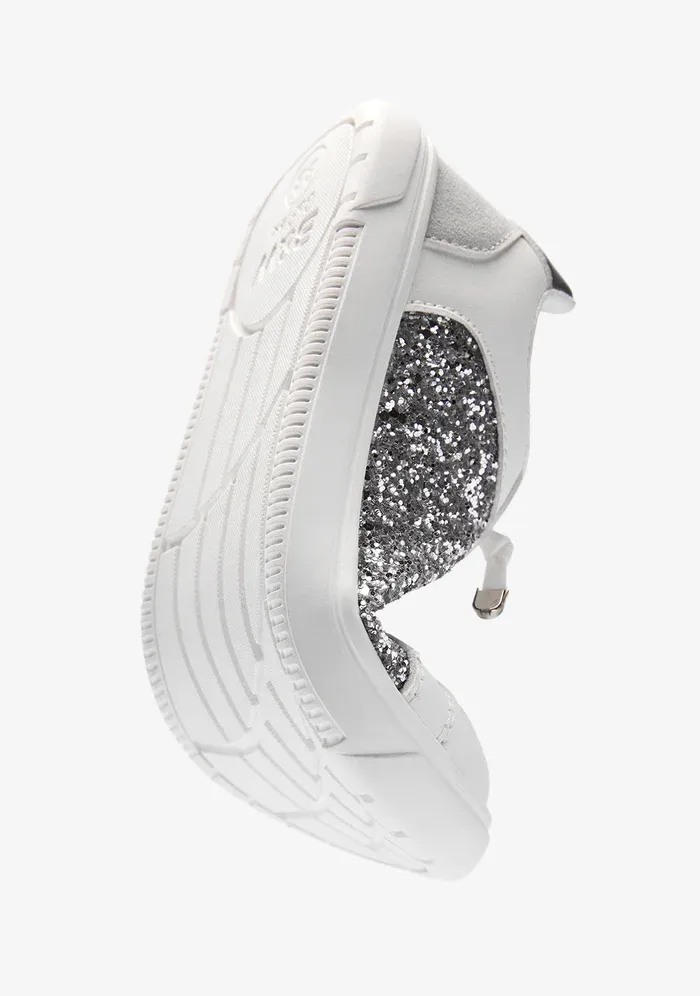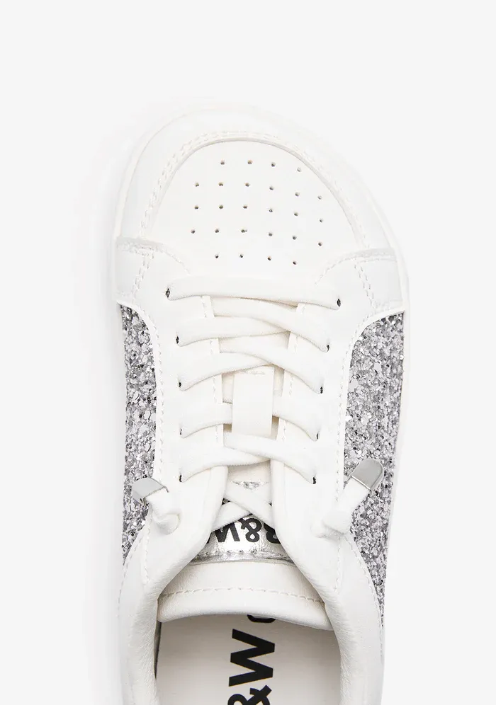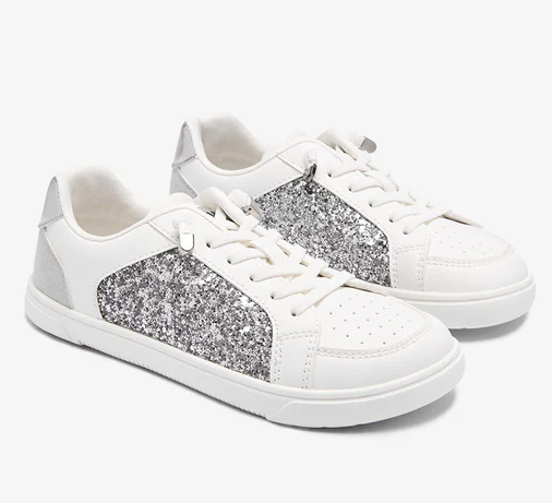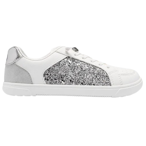 El acabado blanco aporta versatilidad para combinar con cualquier conjunto, mientras que el detalle lateral en glitter plateado añade un toque especial y moderno. Son ideales para: