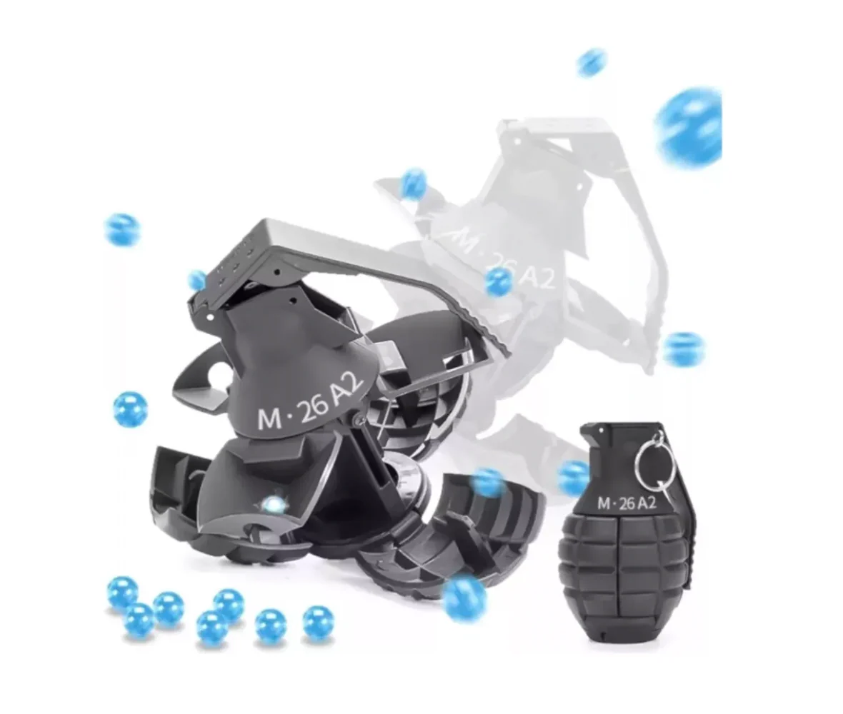 3. Lanzar la granada, al momento de impactar contra la superficie se abrirá y saldrán disparados los balines.