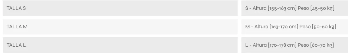 Malla larga de máxima adaptabilidad y compresión homogénea. Sujeción firme y de gran elasticidad, se adapta perfectamente al cuerpo evitando pliegues y bolsas que puedan incomodar, y así evitar el riesgo de rozaduras y molestias.