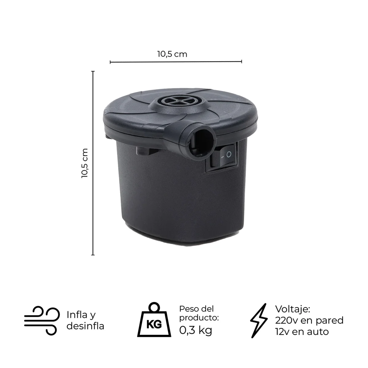 El Inflador Eléctrico Barlovento by Kano te permitirá inflar y desinflar todos tus productos inflables de manera rápida y conveniente. Gracias a su versatilidad, podrás utilizarlo en infinidad de situaciones ya que puede conectarse al encendedor del auto (12v) o a la pared (220v).