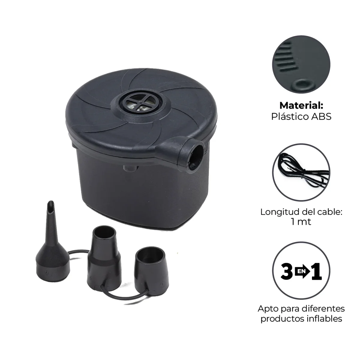 - Cuenta con boquilla 3 en 1 para calzarlo con diferentes productos inflables