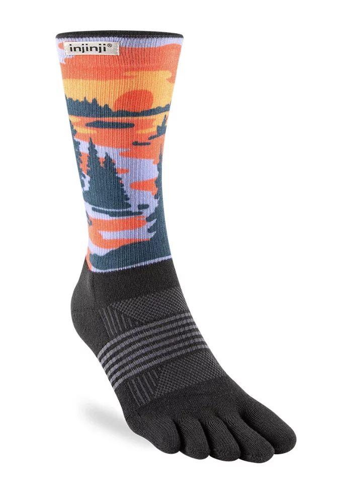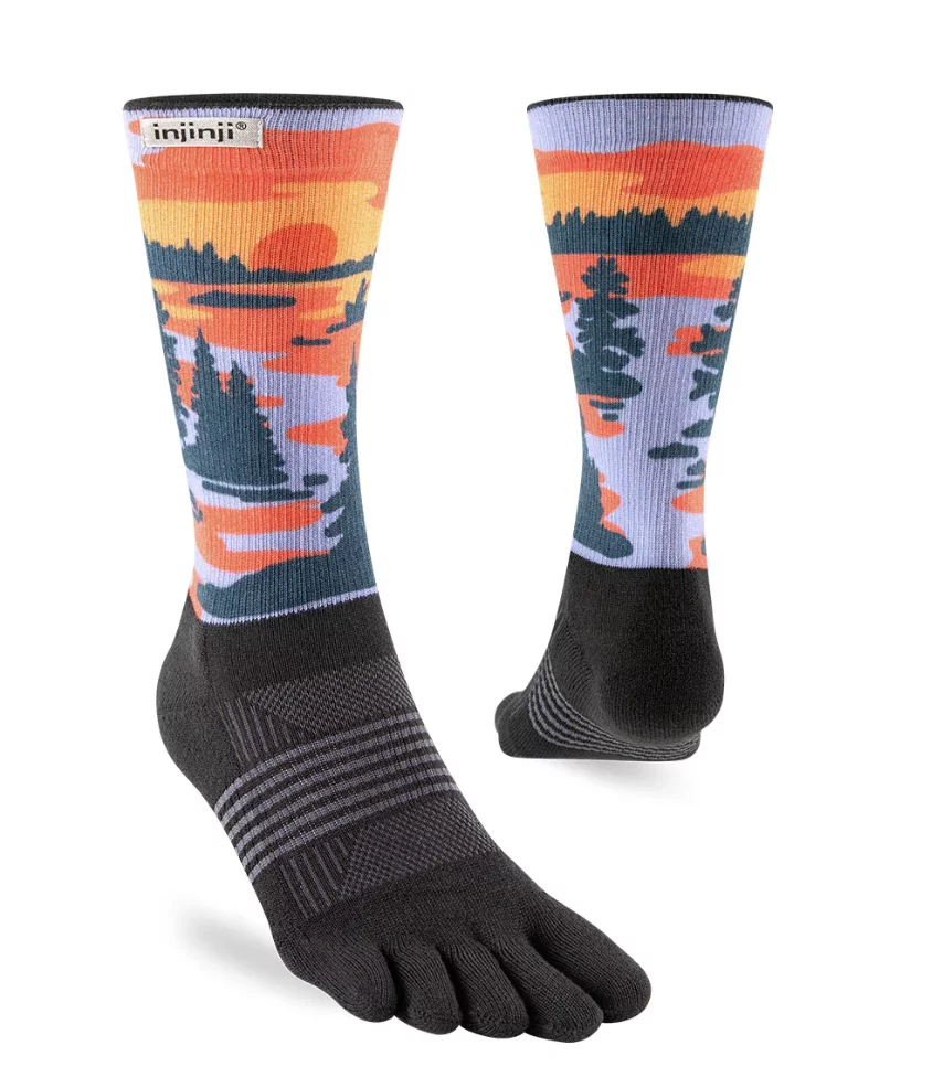 Los Calcetines Injinji Artist Designed Dusk combinan creatividad y rendimiento en un diseño exclusivo creado por artistas.