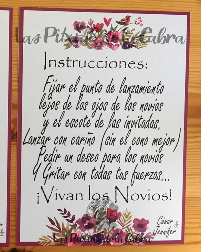 Cartel Instrucciones Arroz estampado Oihane fue un diseño que creamos específicamente para estos novios.
