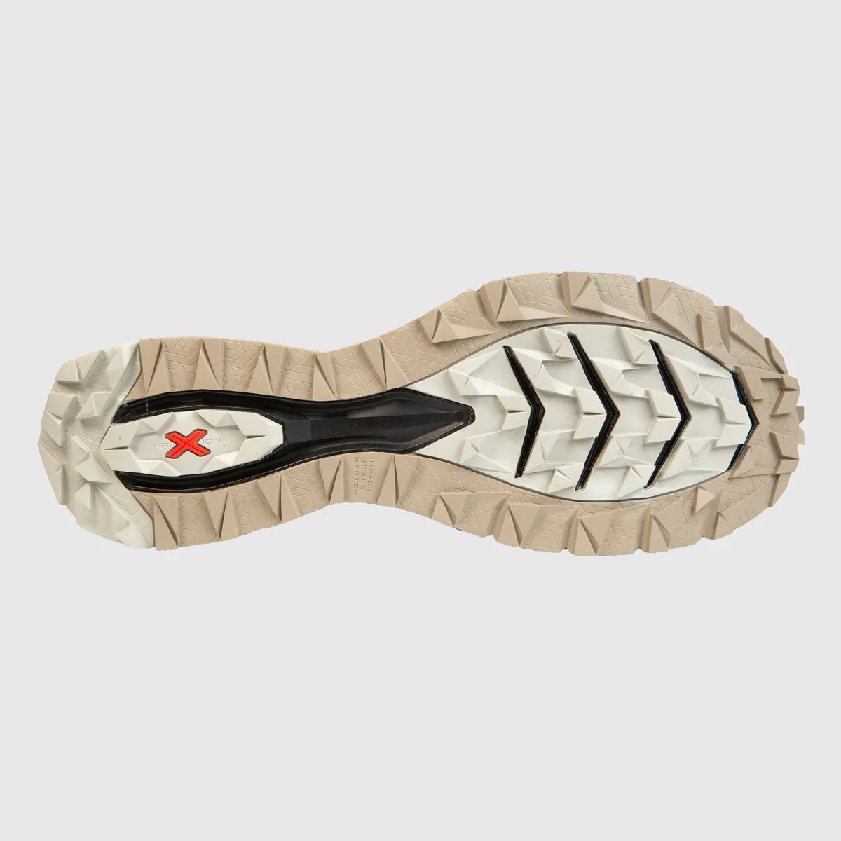 El inserto delantero mejora la amortiguación, mientras que el inserto posterior aporta estabilidad en carrera. La mediasuela incluye además un inserto Rock-Shield en EVA de alta densidad para una mayor protección.