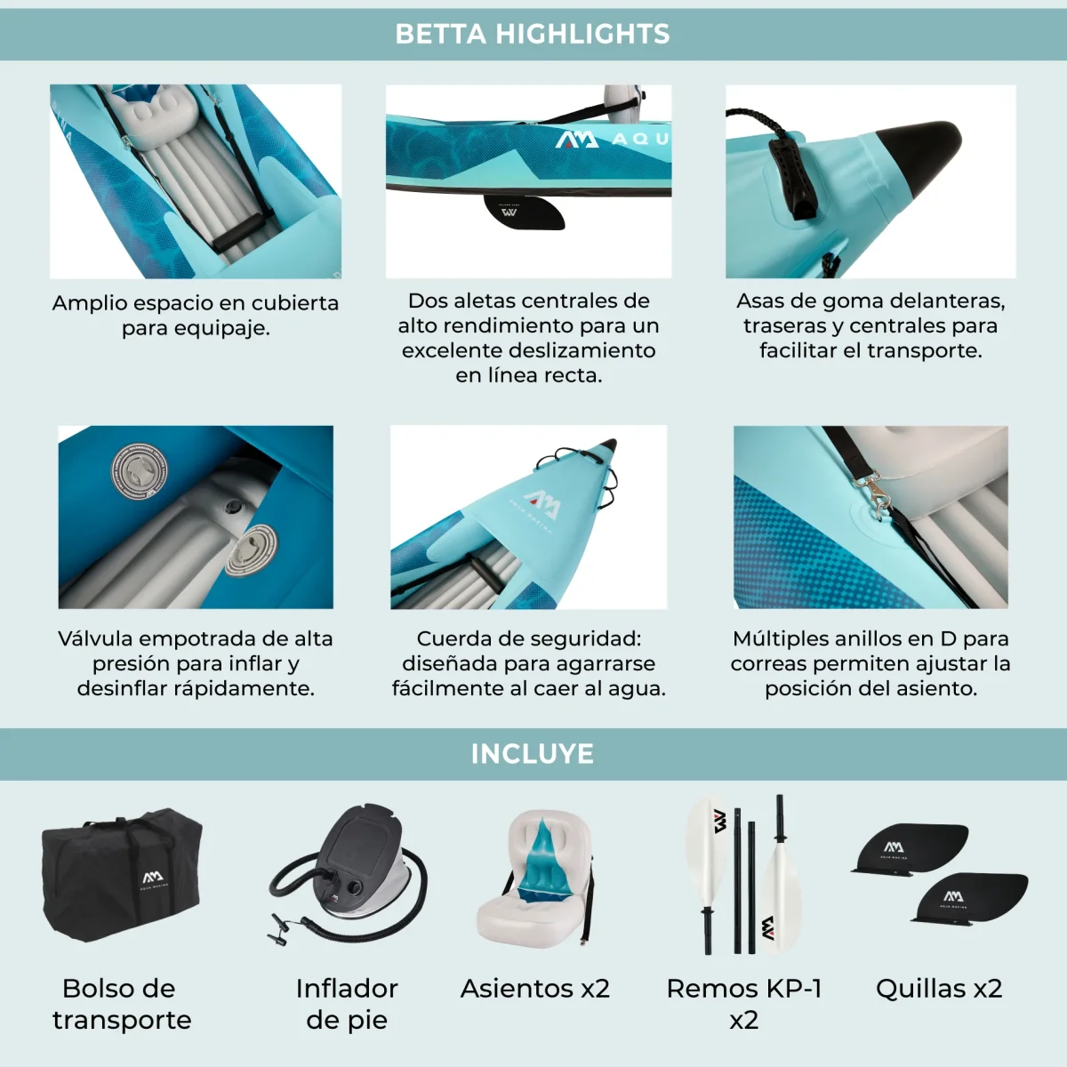 La conocida serie BETTA está pensada para pasarlo bien en familia, con amistades o simplemente disfrutar del agua de manera recreativa. Fabricados en PVC reforzado, los kayaks BETTA by Aqua Marina son livianos, fáciles de mantener y perfectos para quienes quieren salir al agua sin complicaciones, en un kayak versátil y fácil de remar.