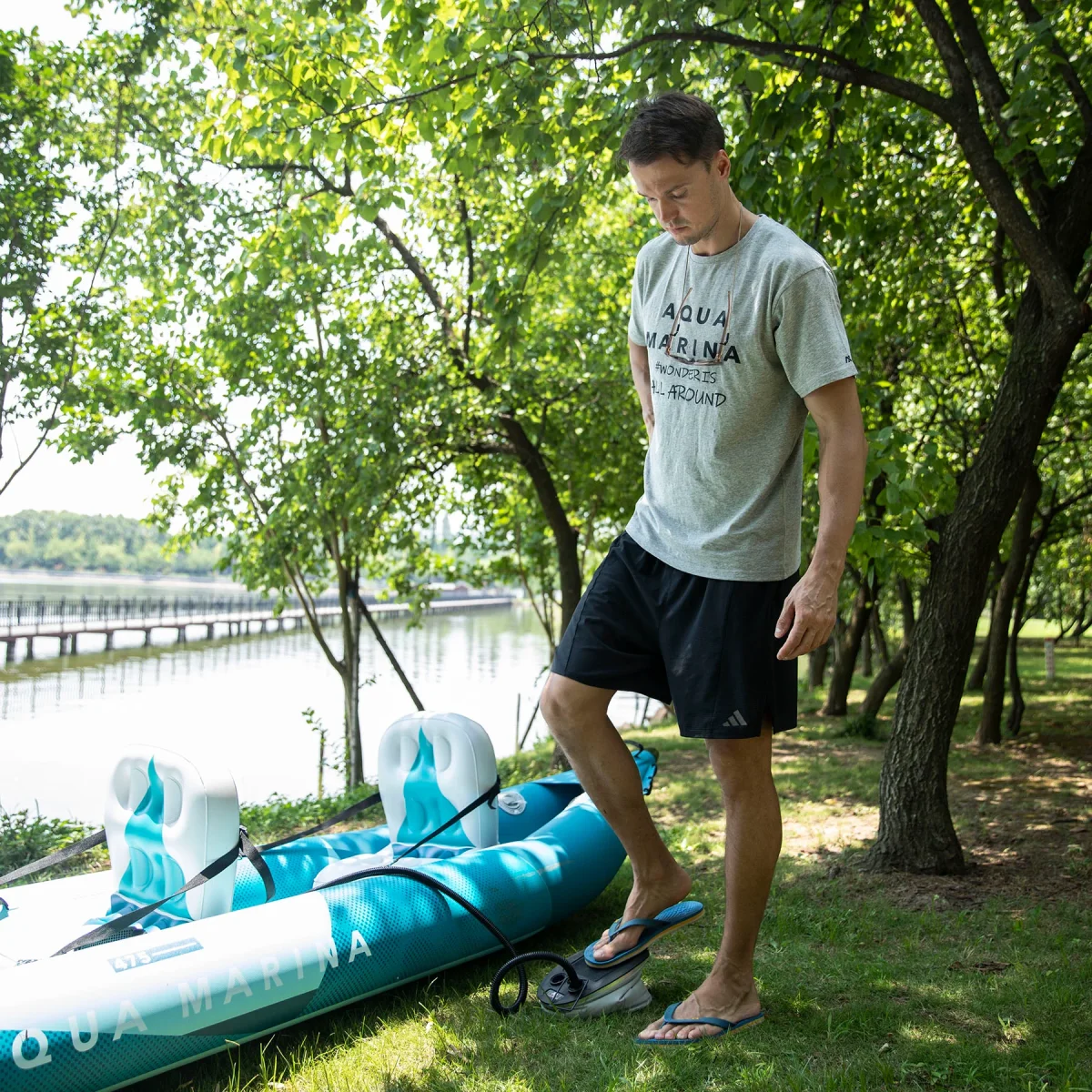 - Sistema inflable, puedes llevarlo a cualquier lago, rio o incluso al mar y guardarlo en tu casa sin necesidad de espacio extra.