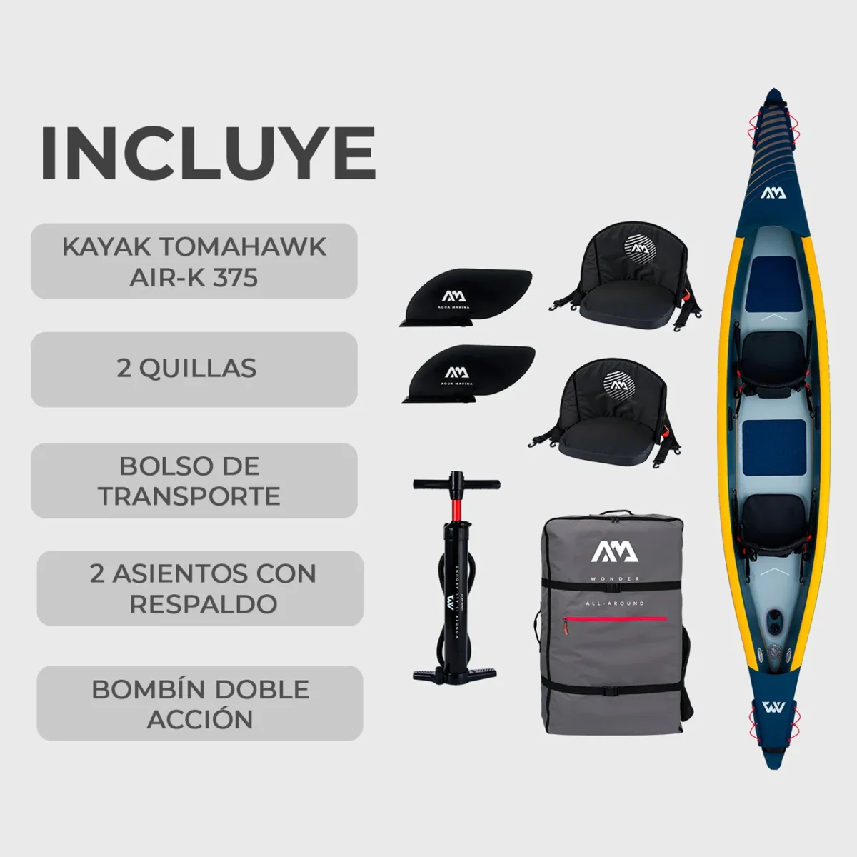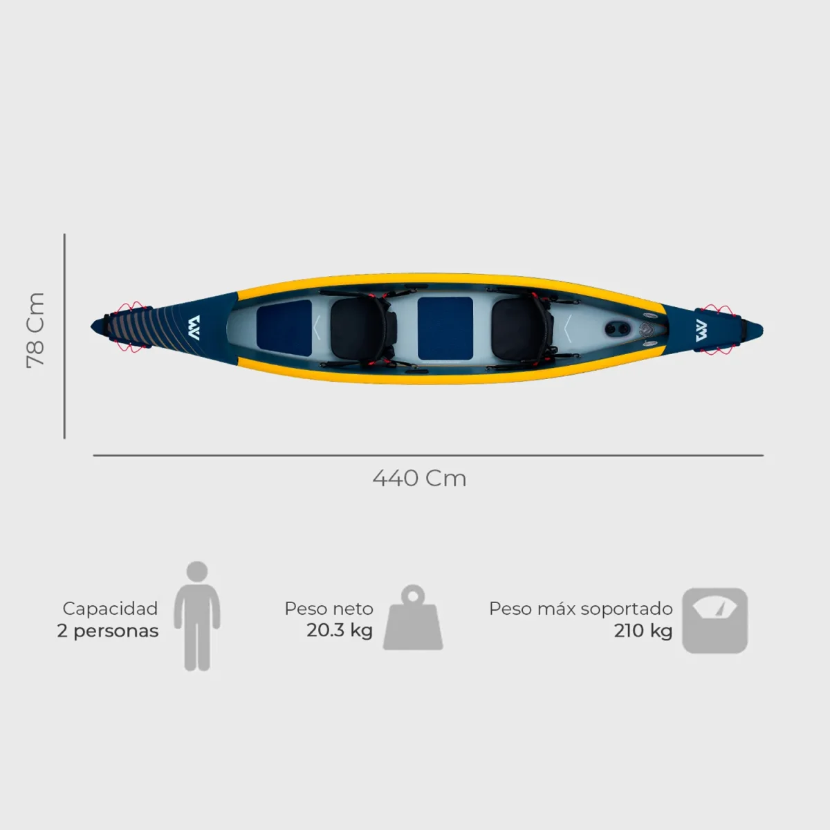 El Kayak Inflable Doble TOMAHAWK AIR-K 440 by Aqua Marina viene con una gama de colores de estilo marino. Su diseño moderno y sus impresionantes acabados seguramente llamarán la atención en cualquier agua. Es ideal para lago, río y mar!