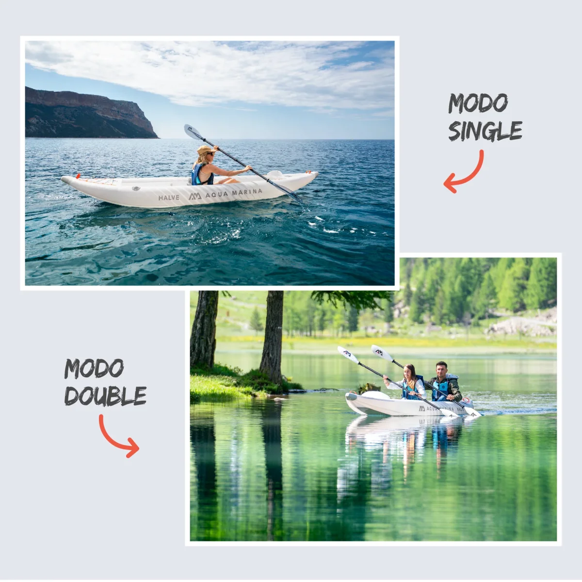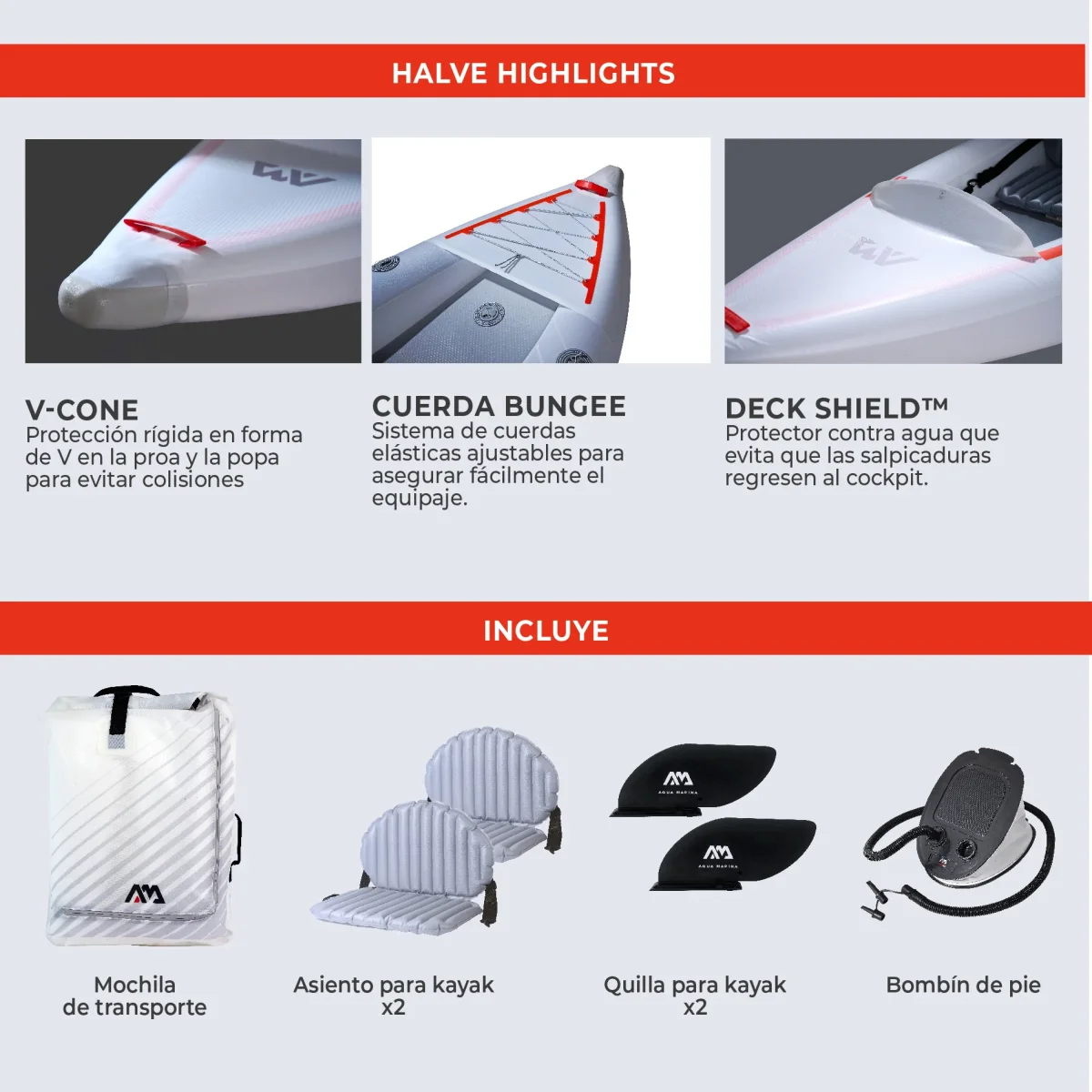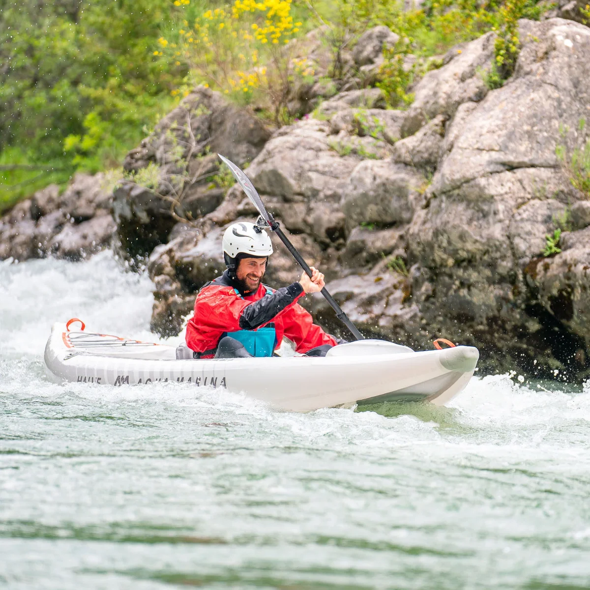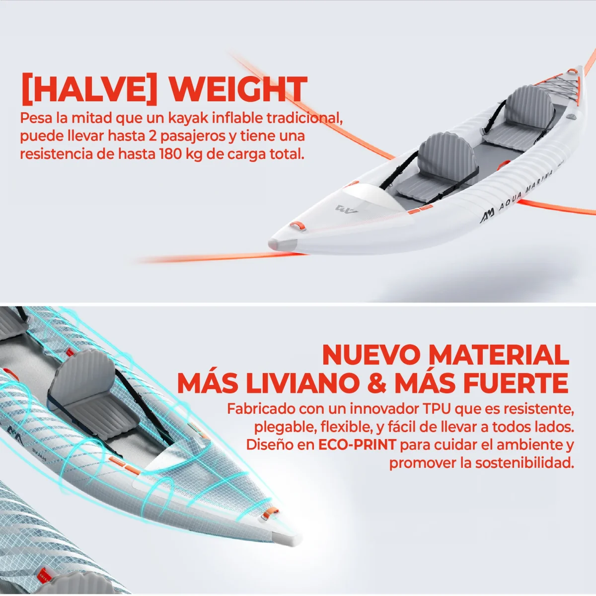 ¡Descubre el increíble Kayak Inflable HALVE by Aqua Marina! Ligero como una pluma (¡50% más liviano que los kayaks tradicionales!) y con un diseño urbano y deportivo que parece sacado del futuro.