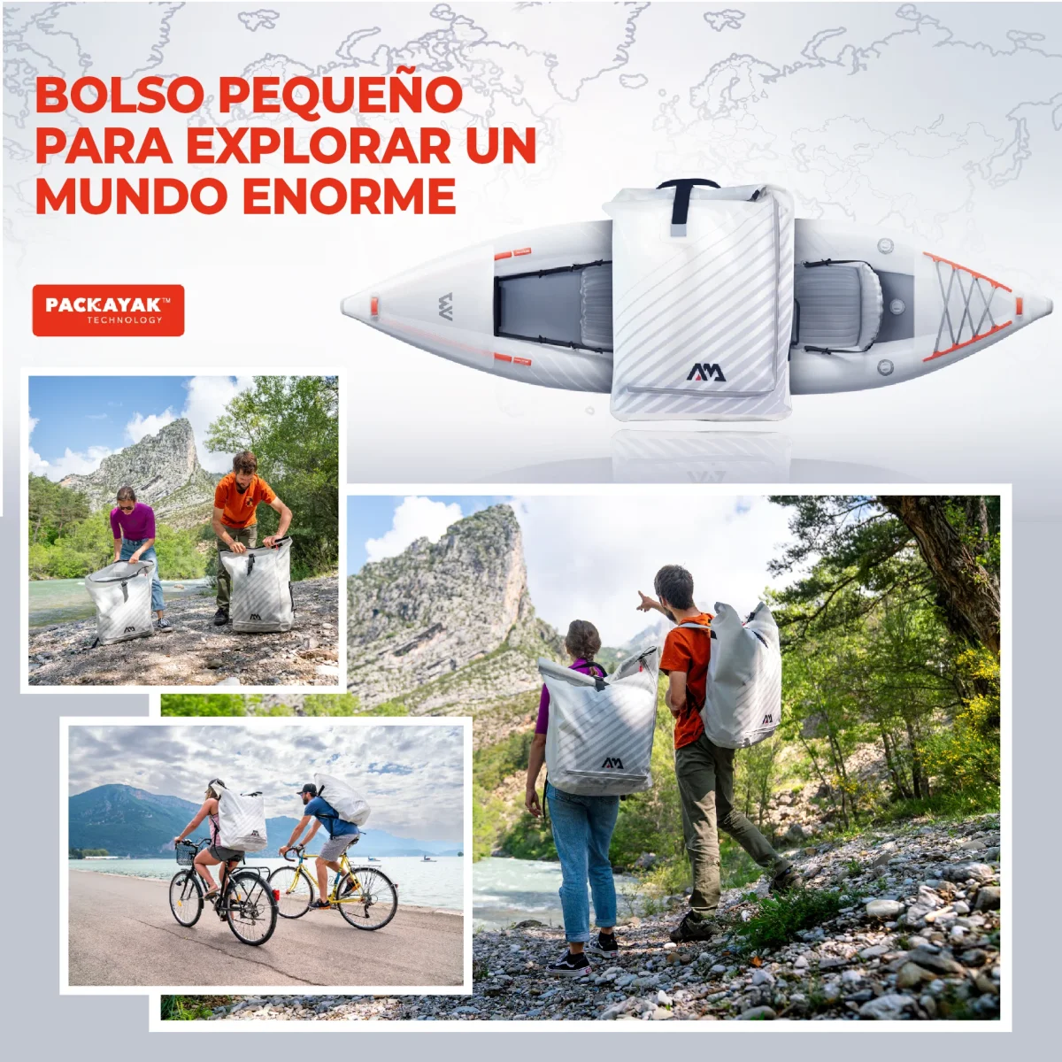 - Medidas del kayak plegado en su bolso de transporte: 50 x 50 x 30 cm