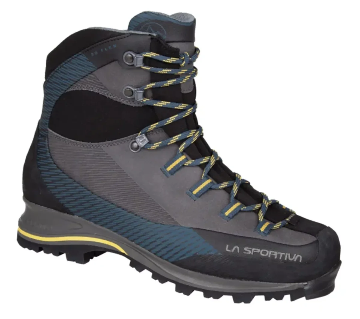 La TRK Leather GTX de La Sportiva es una bota de trekking y backpacking con una imagen y tecnología derivada de la familia Trango, que añade piel, ideal para excursiones pedregosas, paseos por el bosque y hiking con mochila pesada.