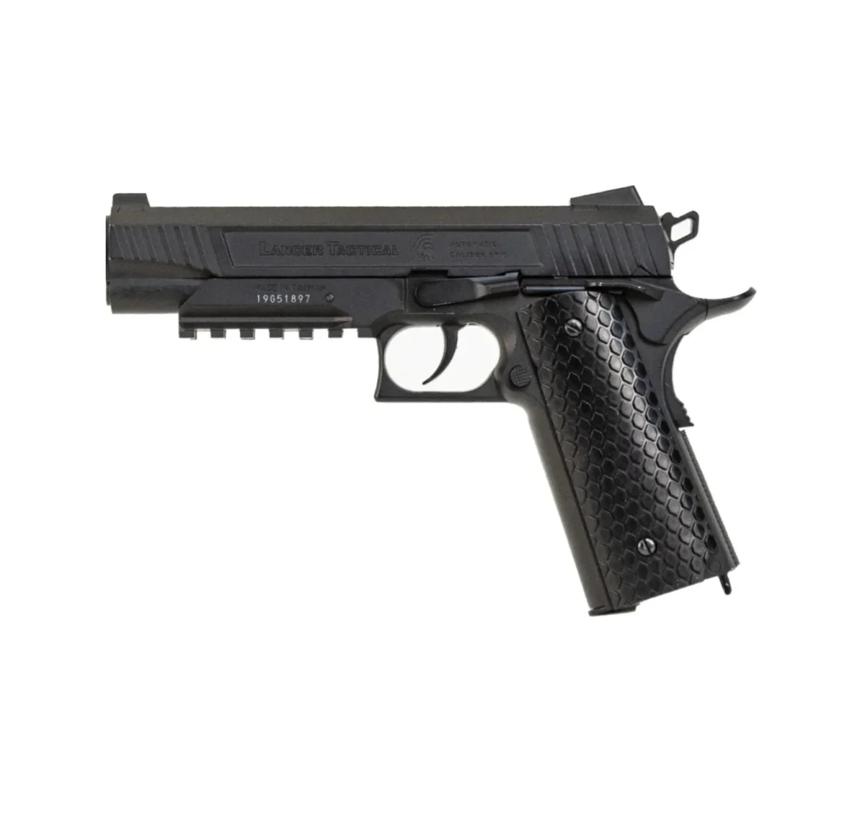 – Riel de accesorios integrado para luces y láseres