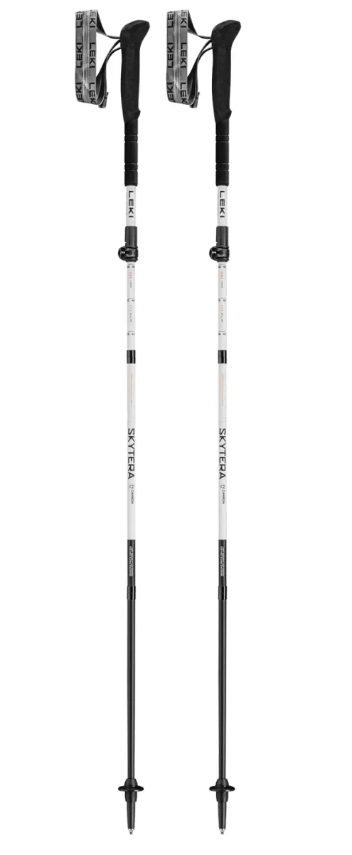 Pareja de bastones Leki Skytera FX Carbon SL son los bastones perfectos para senderismo de montaña en estilo ligero. Diseñados para quienes buscan el máximo rendimiento con el mínimo peso, combinan carbono HRC (Highest Racing Carbon) de alta calidad con un sistema plegable compacto y ajuste rápido.