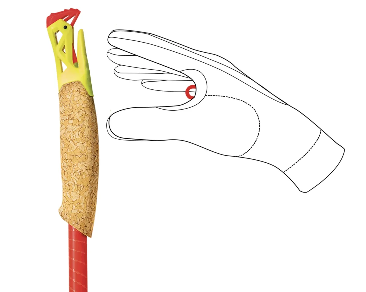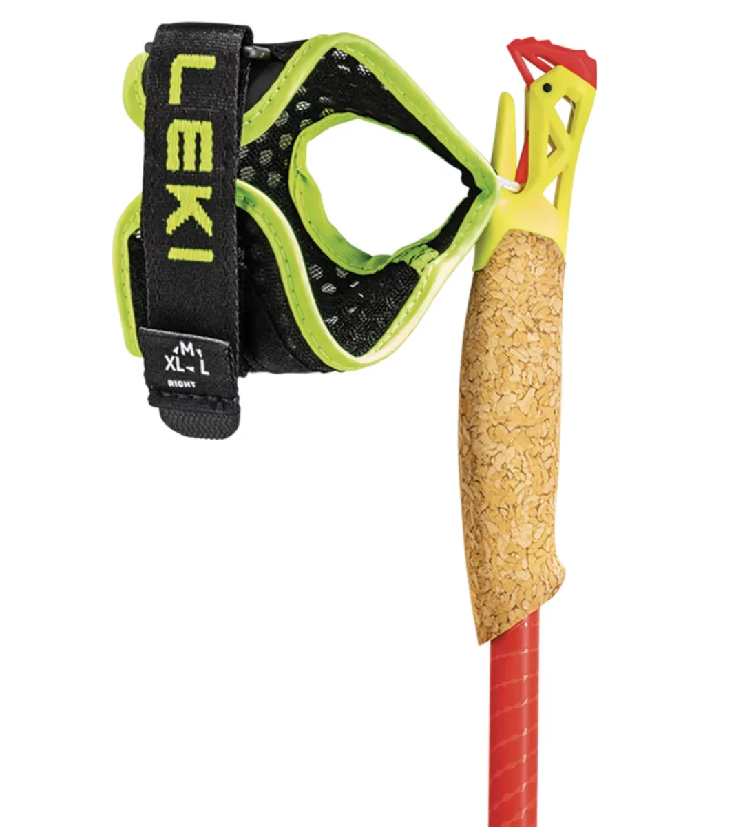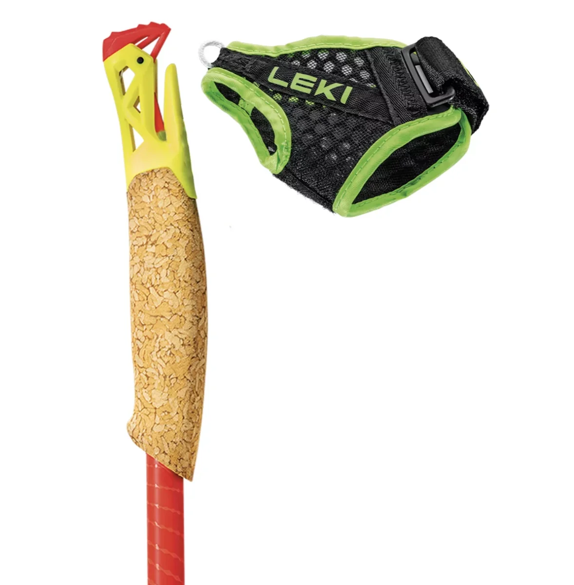 Este bastón de competición está equipado con el nuevo Trail Shark, el primer sistema de correas de agarre desarrollado 100 por ciento para el trail running.